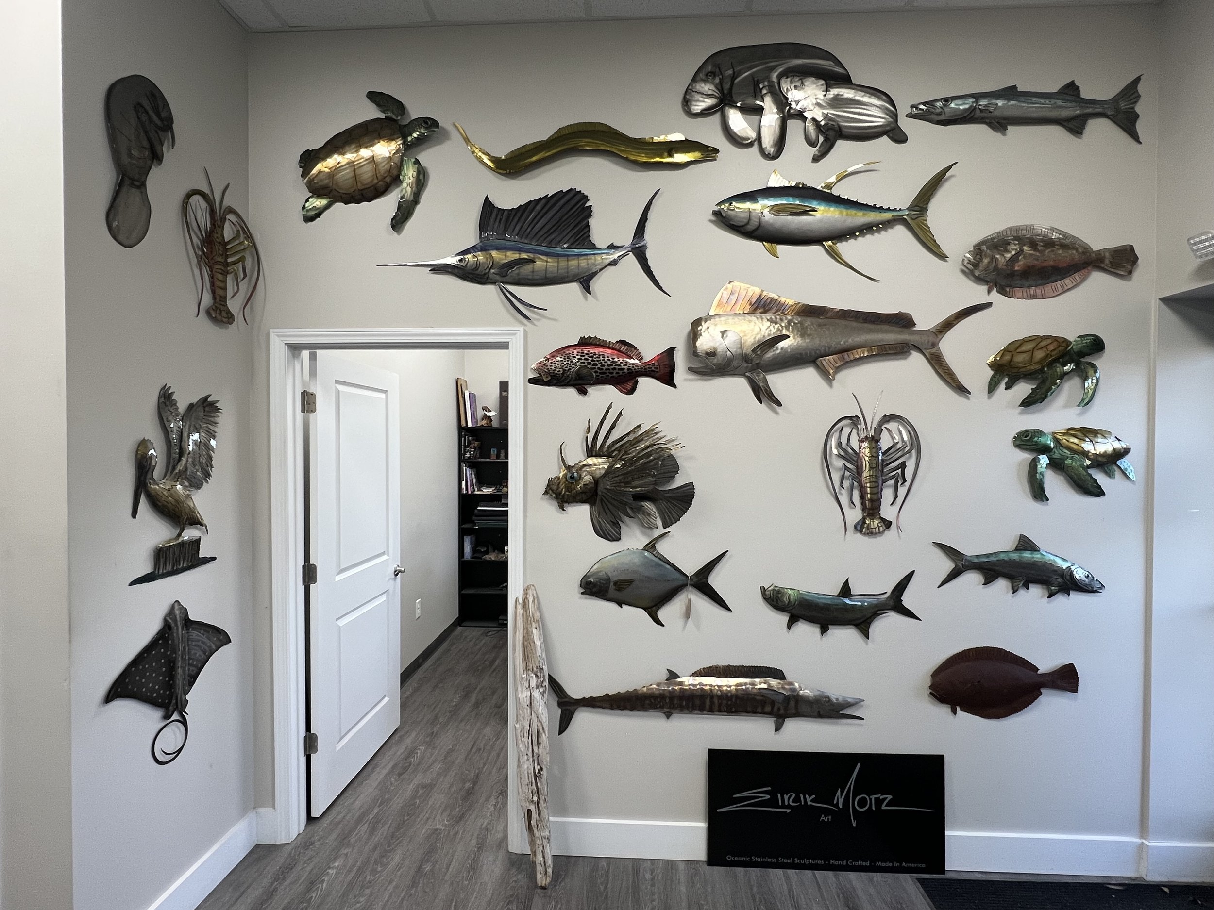Discover the unique charm of handcrafted steel art by Eirik Motz. Each piece is carefully made in the USA, featuring striking marine-themed sculptures that bring coastal beauty into your space. Explore our collection and enjoy nationwide shipping on all orders.